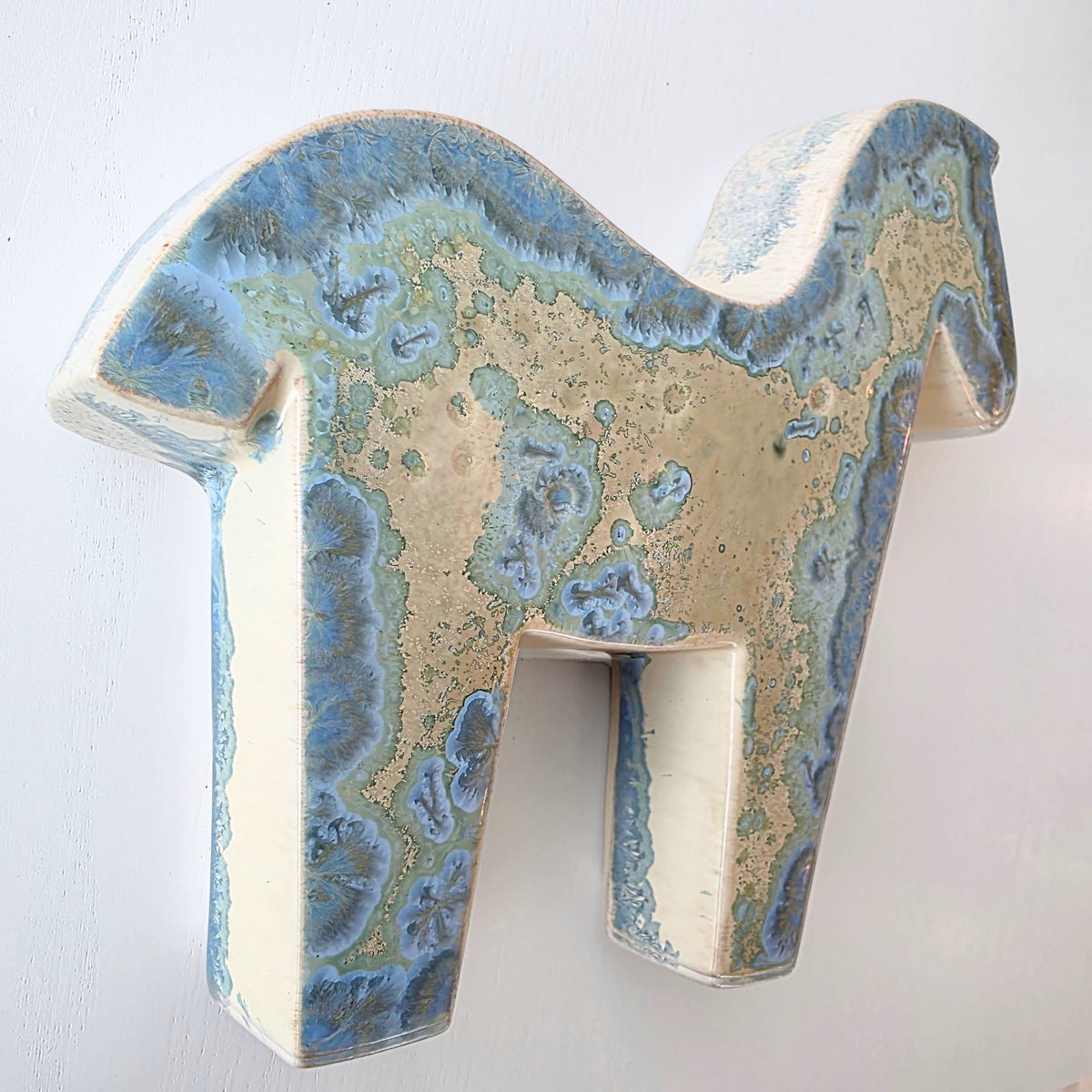Size 20x21.5 cm h4 cmWeight 700 gHanging holes on the back of the workGlazed ceramic, crystal glazeProfit margin system - art objects: excluding deductible VAT